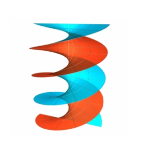 • S_r=(\cos\theta,\sin\theta,0),S_\theta=(-r\sin\theta,r\cos\theta,b),S_r\times S_\theta=(b\sin\theta,-b\cos\theta,r),\mathrm{n} =\frac{1}{\sqrt{b^2+r^2}}(b\sin\theta,-b\cos\theta,r),S_{rr}=0,S_{r\theta}=S_{\theta r}=(-\sin\theta,\cos\theta,0),S_{\theta\theta}=(-r\cos\theta,-r\sin\theta,0),因此\mathrm dS=|S_r\times S_\theta|\mathrm dr\mathrm d\theta=\sqrt{b^2+r^2}\mathrm dr\mathrm d\theta,D_P=\mathrm dr^2+(r^2+b^2)\mathrm d\theta^2,M_P=-\frac{2b}{\sqrt{b^2+r^2}}\mathrm dr\mathrm d\theta,\mathfrak{k_n}=\frac{-\frac{2b}{\sqrt{b^2+r^2}}\mathrm dr\mathrm d\theta}{\mathrm dr^2+(r^2+b^2)\mathrm d\theta^2}.